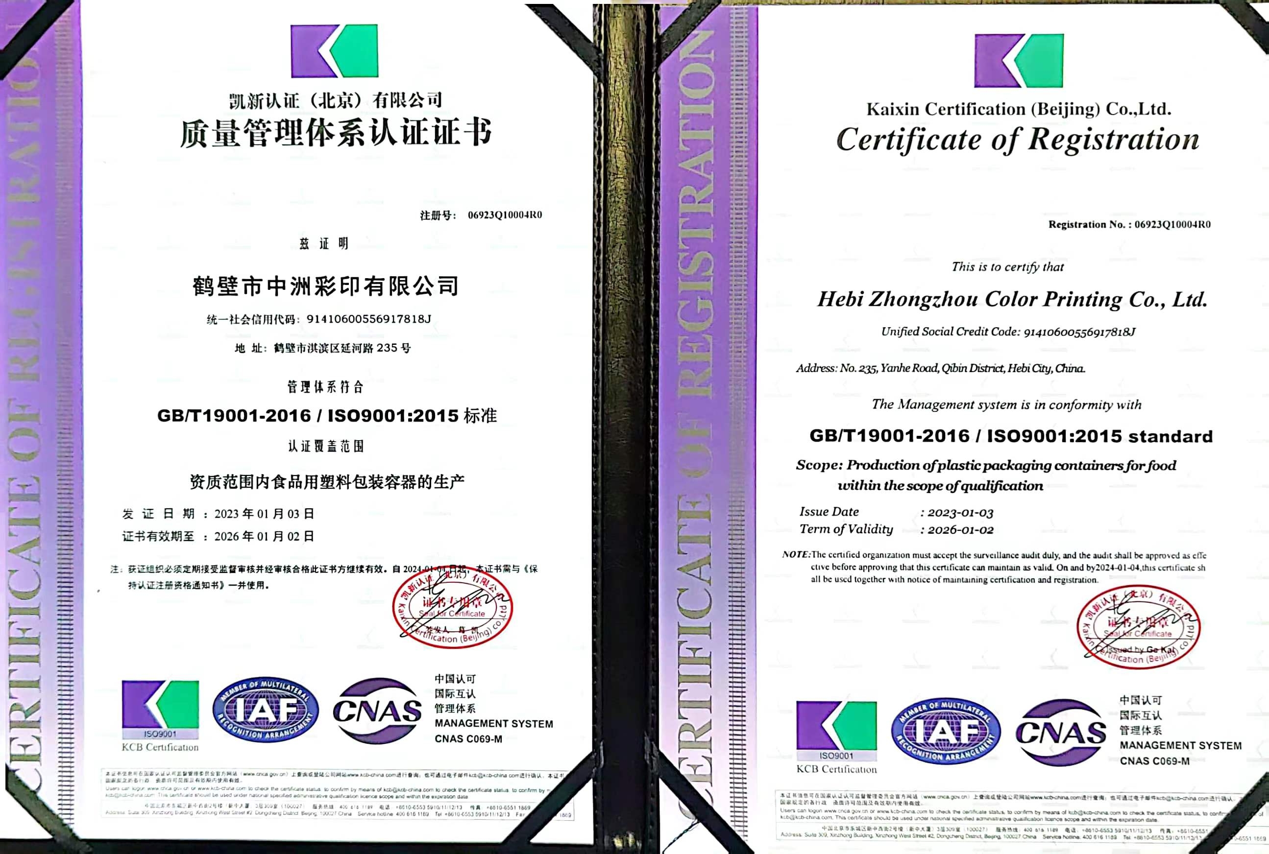鶴壁市中洲彩印有限公司成立于2010年,位于鶴壁市開發(fā)區(qū)延河路235號(hào),是一家集創(chuàng)意設(shè)計(jì)、制版、印刷、復(fù)合、制袋為一體的塑料軟包裝高新技術(shù)企業(yè)。公司占地42畝,建設(shè)有無塵凈化車間8000平方米?,F(xiàn)擁有中、高速電腦對(duì)版印刷機(jī)3臺(tái),干式復(fù)合機(jī)1臺(tái),無溶劑復(fù)合機(jī)3臺(tái),制袋機(jī)20臺(tái),自有設(shè)計(jì)工作室,總投資5000余萬元。公司現(xiàn)有員工120余名,其中專業(yè)技術(shù)人員50人,年產(chǎn)值1.2億元。公司于2020年1月份通過了ISO9001質(zhì)量體系認(rèn)證,是目前豫北地區(qū)較大的塑料軟包裝制作企業(yè)。 →